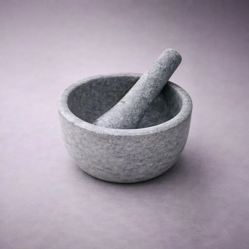 This exquisite Grey soapstone Mortar and Pestle stands out not only for its exceptional functionality in your kitchen but also as a captivating piece of hand-carved art. It allows you to infuse the freshest ground flavors of cumin, basil, cardamom, chilies, garlic, pepper, and more into your culinary creations. What truly distinguishes it is its ample capacity, stunning aesthetics, and the assurance that you can use it without the need for excessive force, eliminating the risk of chipping or cracking.